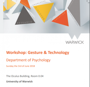 June 2018. Abi Roper. "Vision-based Gesture Recognition Technology Supports Gesture Learning in Severe Aphasia". Invited talk - Workshop: Gesture & Technology 2018, University of Warwick, UK |