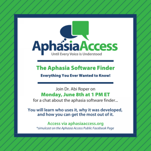 June 2020. Abi Roper. "The Aphasia Software Finder: everything you ever wanted to know!" Aphasia Access Fireside Chat. AphasiaAccess.org, online. [🎥 Watch the talk here] |